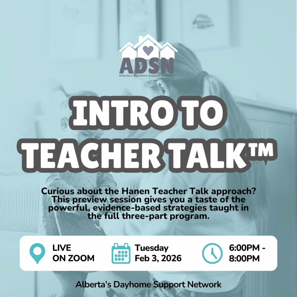 Alberta’s Dayhome Support Network (ADSN) is dedicated to empowering dayhome providers by offering resources, training, and a supportive community tailored to their unique needs. Whether you’re a private or licensed dayhome provider, we’re here to help you succeed through monthly networking events, practical templates, professional development workshops, and more. Create a free ADSN account to discover how we can support you in delivering the highest quality care for the children and families you serve.