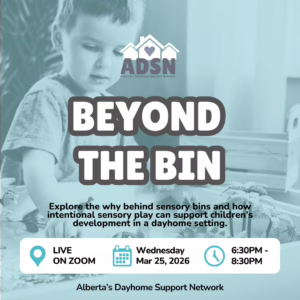 Facilitated by Kayla Snidal of Capable Learners, this session explores how sensory bins can be used as a purposeful learning tool rather than a stand-alone activity. Participants will examine why sensory play matters, how it supports development across age groups, and how to plan and facilitate sensory experiences intentionally within a dayhome setting.